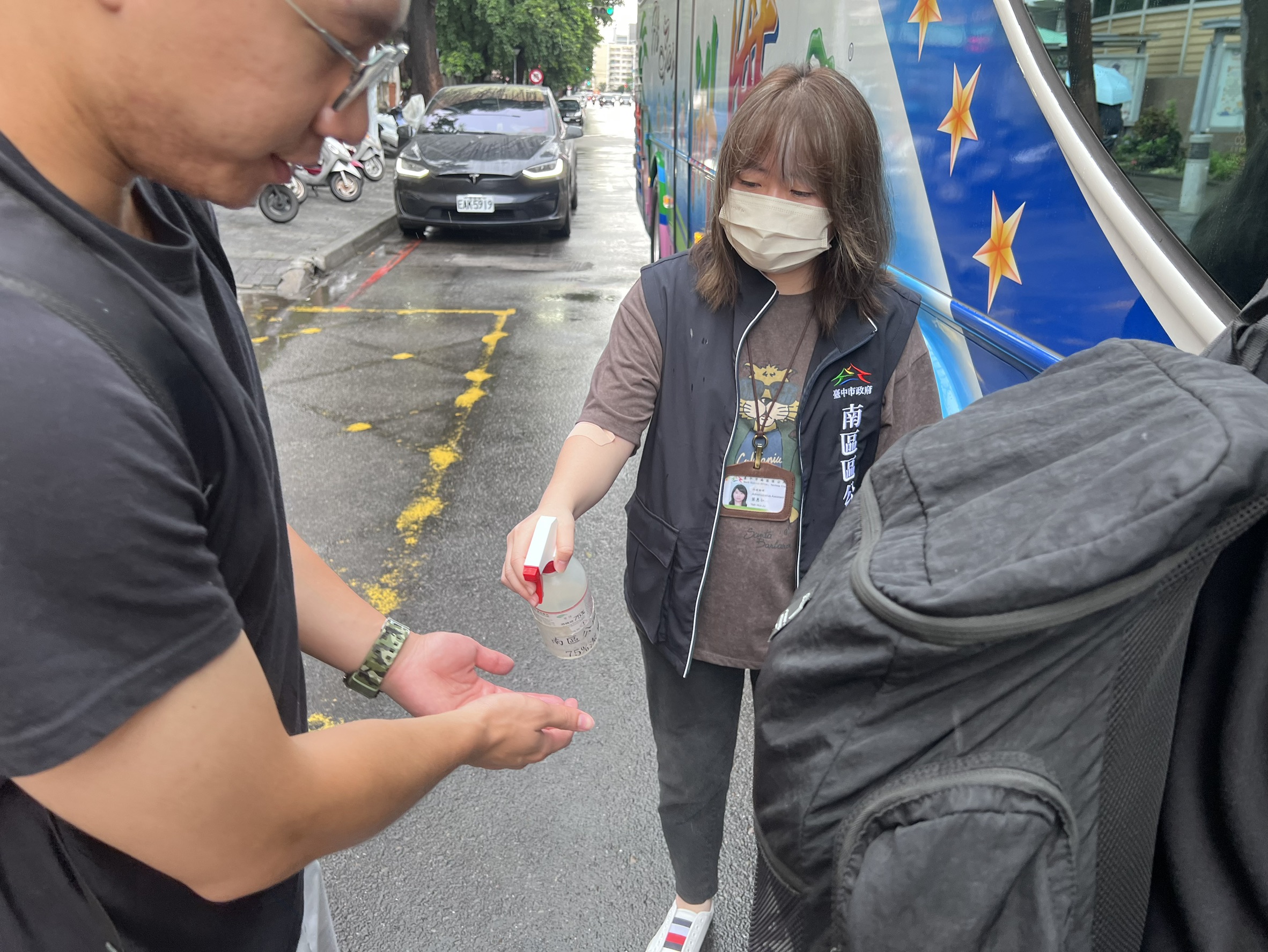 台中市南區區公所李美麗區長與人文課陳榮庭課長重視主辦活動的防疫衛生觀念