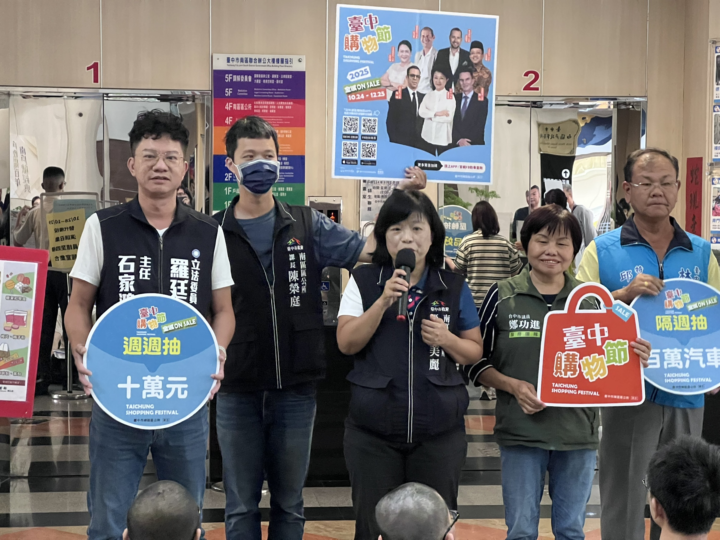 台中市南區區公所李美麗區長與人文課陳榮庭課長對從軍役男政令宣導並宣傳台中購物節等活動