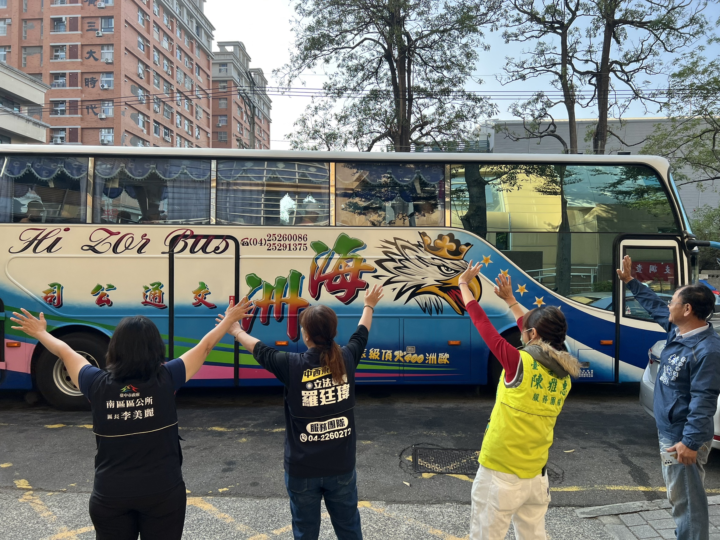 台中市南區區公所李美麗區長與人文課陳榮庭課長與從軍役男依依揮手送別