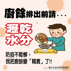 為提升廚餘清運及處理效率,請市民落實廚餘瀝水作業,減少廚餘水分含量