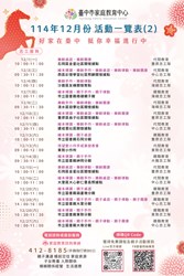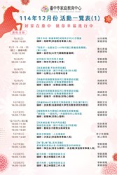 臺中市家庭教育中心114年12月份活動一覽表