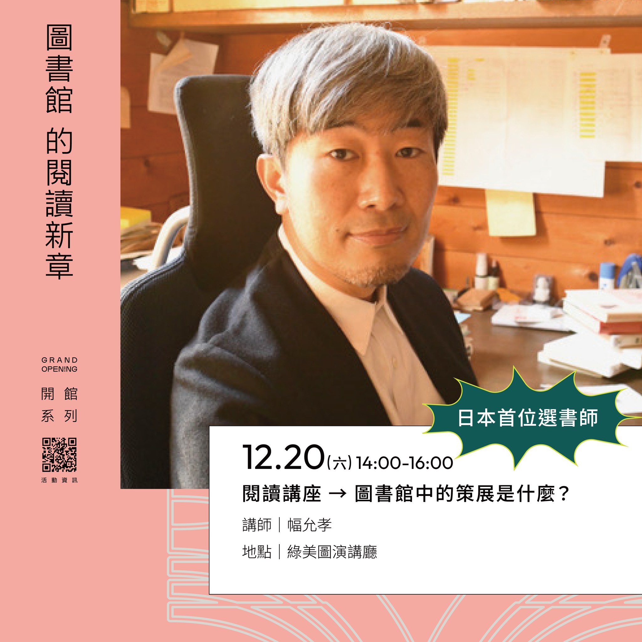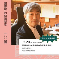 二、 臺中市立圖書館精心規劃三場國際講座,邀請日本與韓國三位重量級講者——繪本作家長谷川祐次、日本首位「選書師」幅允孝,以及韓國科幻文學新星金草葉——於開館期間接力登場。三位講者將以跨文化視角,分別就生命、閱讀與未來等主題進行分享,期望為市民開啟一場深度且充滿想像力的閱讀饗宴。
