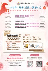 臺中市家庭教育中心【115年1月份活動一覽表】 搶先開箱!