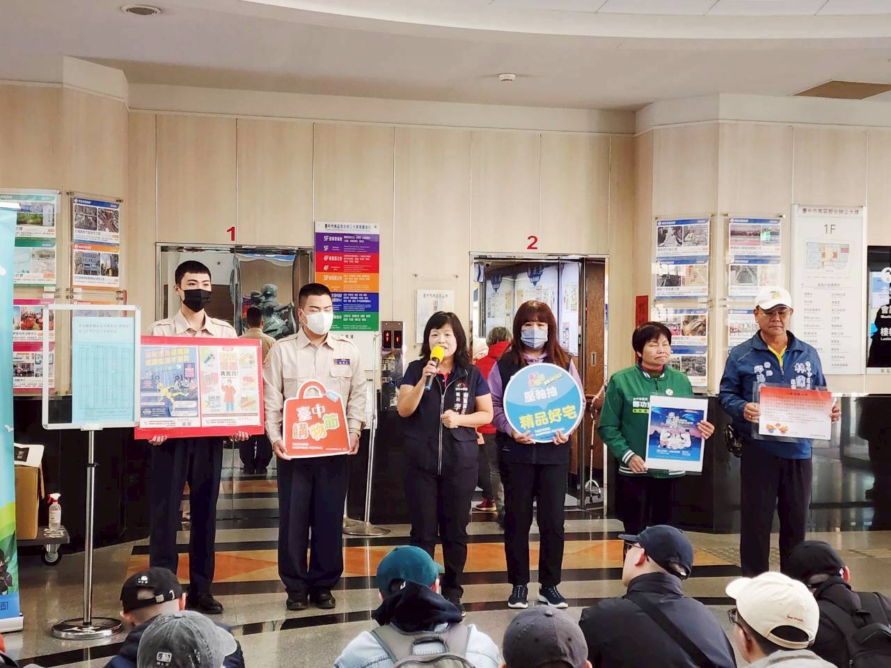 台中市南區區公所李美麗區長與人文課陳榮庭課長對從軍役男政令宣導如反詐騙及宣傳2026中台灣燈會等活動