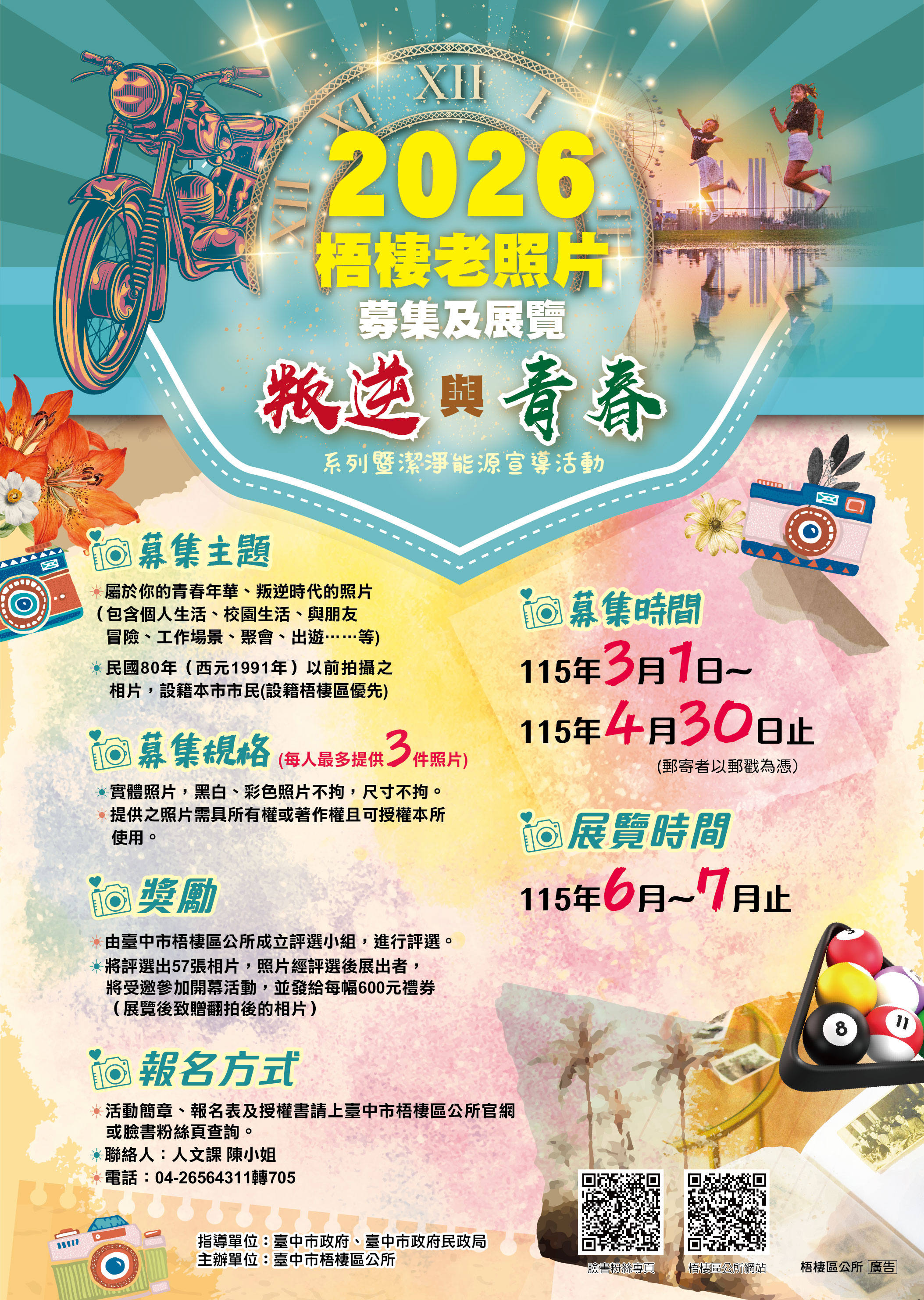 臺中市梧棲區公所「2026梧棲老照片募集及展覽-叛逆與青春系列暨潔淨能源宣導活動」