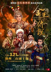 (二) 115年3月21日(星期六)晚間7點,假潮州三山國王廟(潮州鎮西市路33號)邀請明華園天字團帶來經典歌仔戲《金王傳說》。