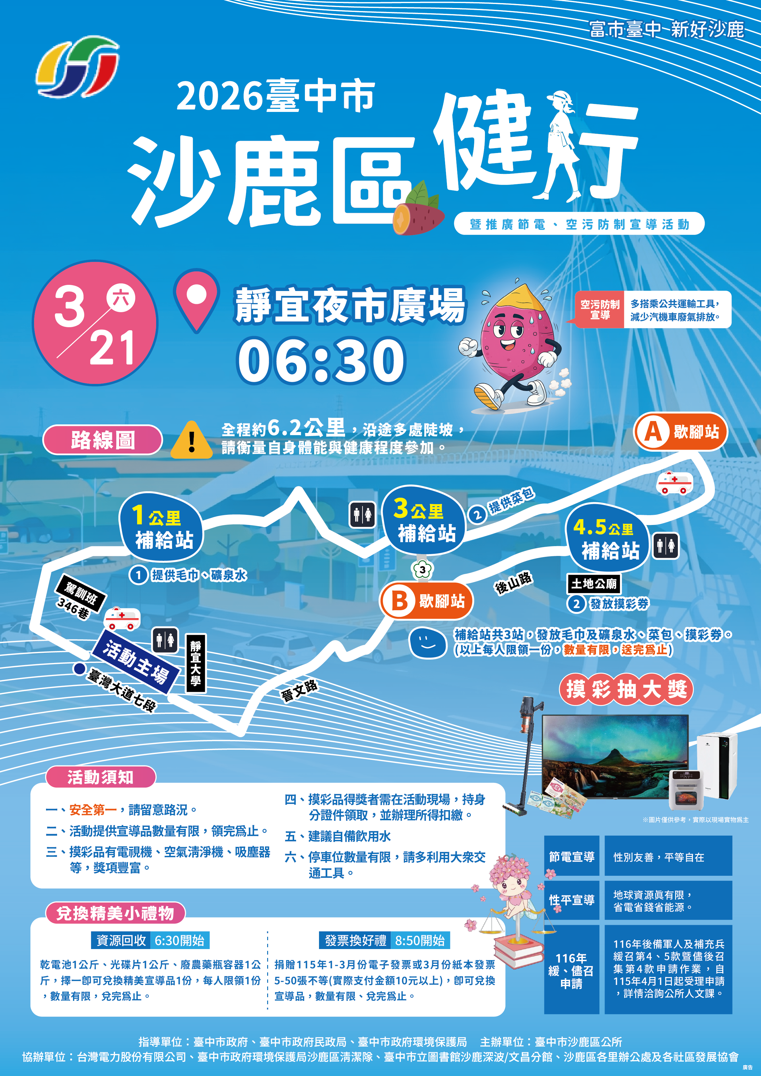 臺中市沙鹿區公所辦理「2026沙鹿區健行暨推廣節電、空污防制宣導活動」,歡迎踴躍參加!
