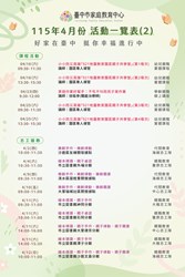 臺中市家庭教育中心【115年4月份活動一覽表】🍀幸福相伴🍀